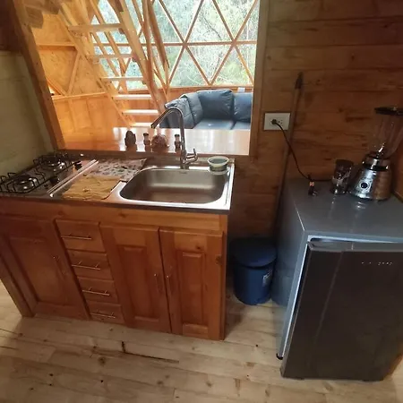 Die Villa Domo La Esmeralda Glamping Familiar 5P verfügt über ein Badezimmer mit einer getrennten Toilette, einer Dusche und einer Waschmaschine. Ein Haartrockner, kostenlose Toilettenartikel und Badelaken sorgen ebenfalls für ein komfortables Erlebnis.